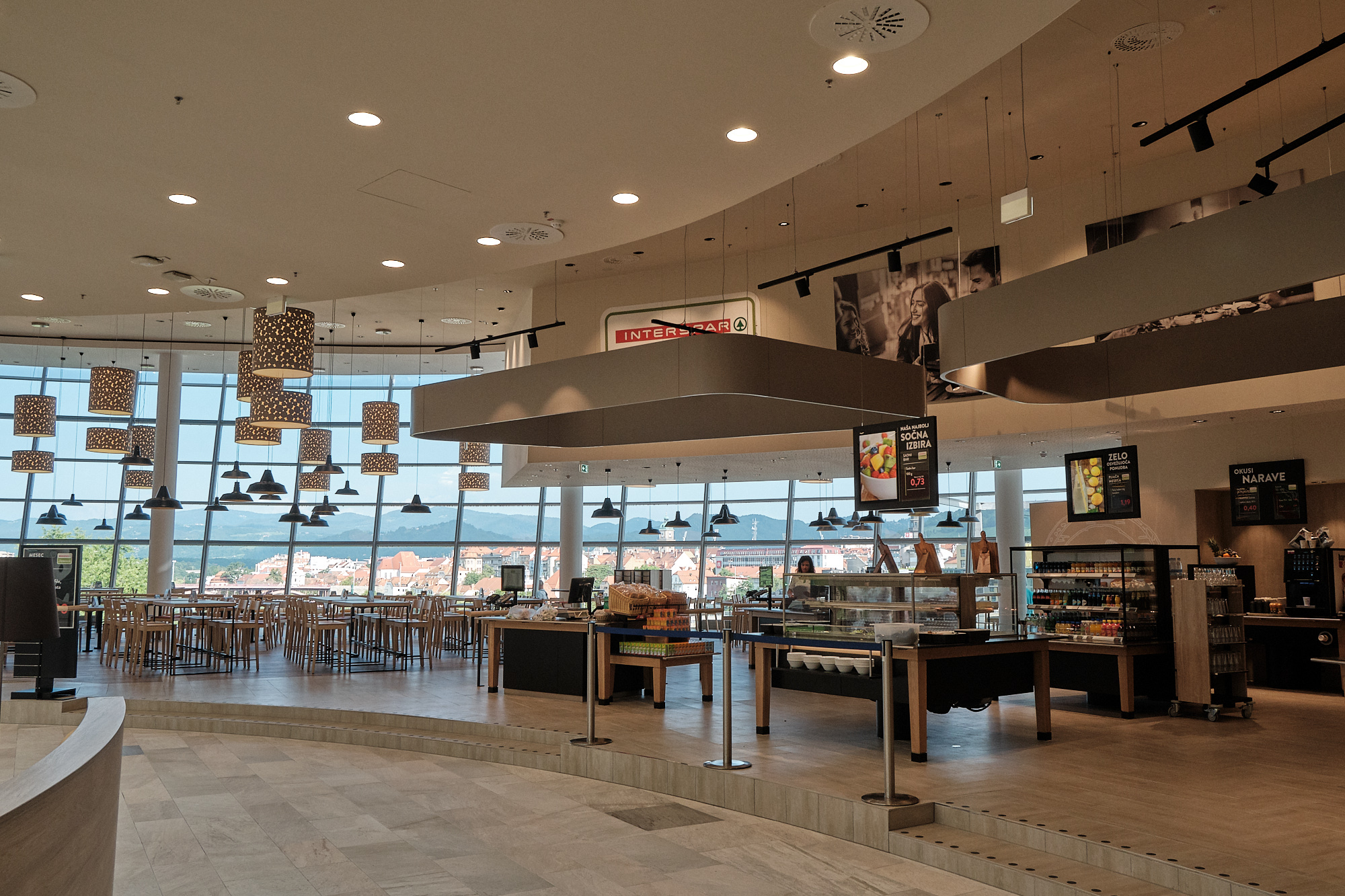 Med obrokom lahko opazujete staro mestno jedro, v poletnem času pa si lahko privoščite okusen obrok na terasi Restavracije Interspar.